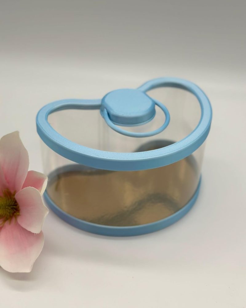 Handgefertigter grauer Hase mit Rose in Geschenkbox für zarte Herzensgrüße