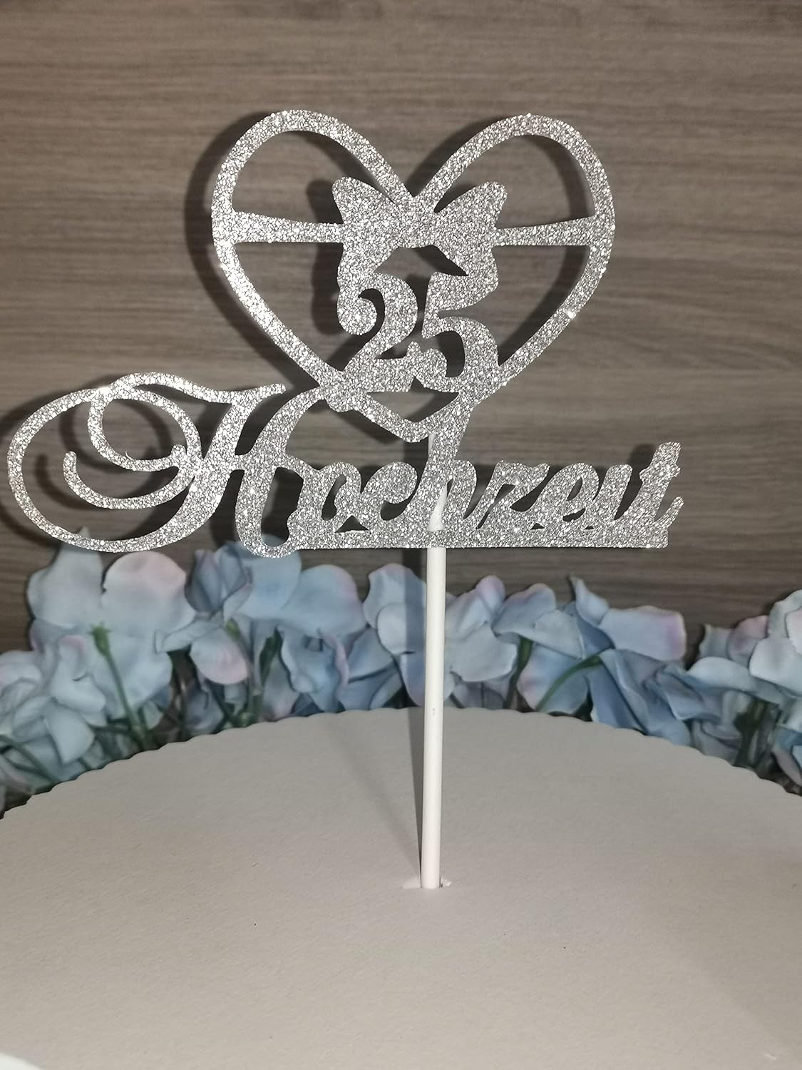 Der Cake Topper “Silberhochzeit” ist die perfekte Ergänzung für Hochzeitstorten und Jubiläen! Mit seinem edlen Glitzereffekt in Silber verleiht er jeder Torte einen Hauch von Eleganz und festlichem Glanz. Er ist ideal für Geburtstags-, Hochzeits- oder Jubiläumstorten, insbesondere zur Feier einer Silberhochzeit.
