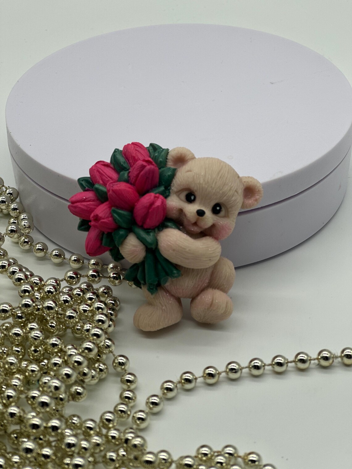 Der kleine Bär mit den frischen Tulpen bringt Farbe, Freude und Wärme in jeden Moment. Verpackt in einer stilvollen Geschenkbox – perfekt zum Verschenken, Dekorieren oder einfach zum Genießen.