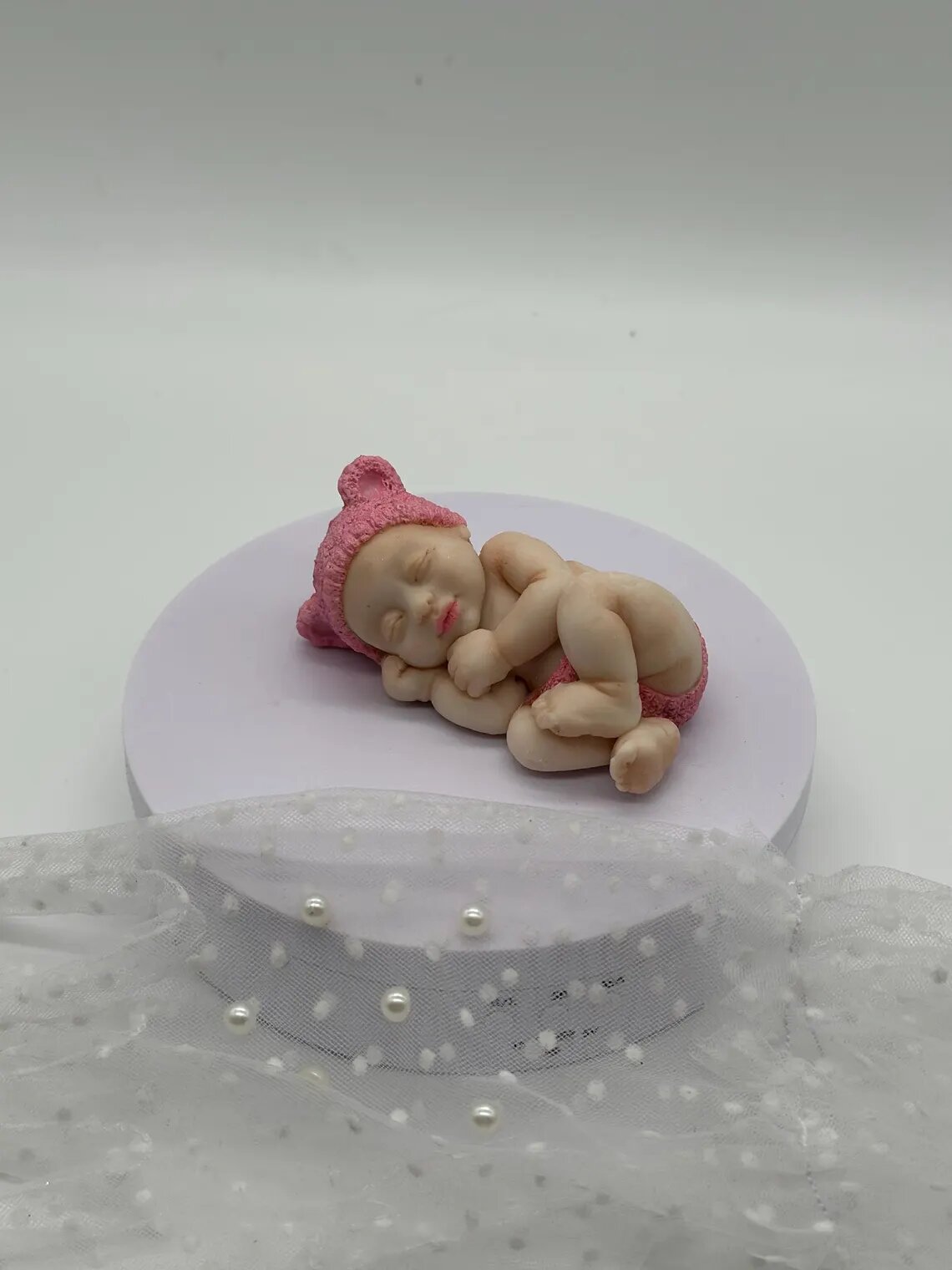 Diese liebevoll gestaltete Schokoladenfigur zeigt ein friedlich schlafendes Baby mit einer zarten rosa Mütze – ein süßer Gruß zur Geburt oder Taufe eines kleinen Mädchens. Von Hand gefertigt aus feinster Schokolade, ist sie das perfekte Geschenk für frischgebackene Eltern oder als bezaubernde Tortendekoration zur Babyparty.
