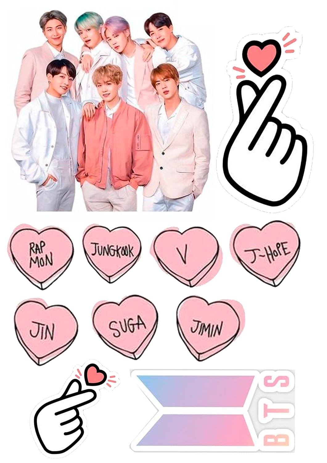 Überraschen Sie Fans der beliebten BTS-Gruppe mit dem Cake Topper “BTS”. Dieses hochwertige 11er-Set aus essbarem Dekorpapier ist perfekt geeignet, um Muffins und Torten für Geburtstagsfeiern oder thematische Events stilvoll zu dekorieren. Mit brillanten fotorealistischen Motiven sorgt dieses Dekorpapier für eine beeindruckende Optik und lässt die Herzen von BTS-Liebhabern höher schlagen.