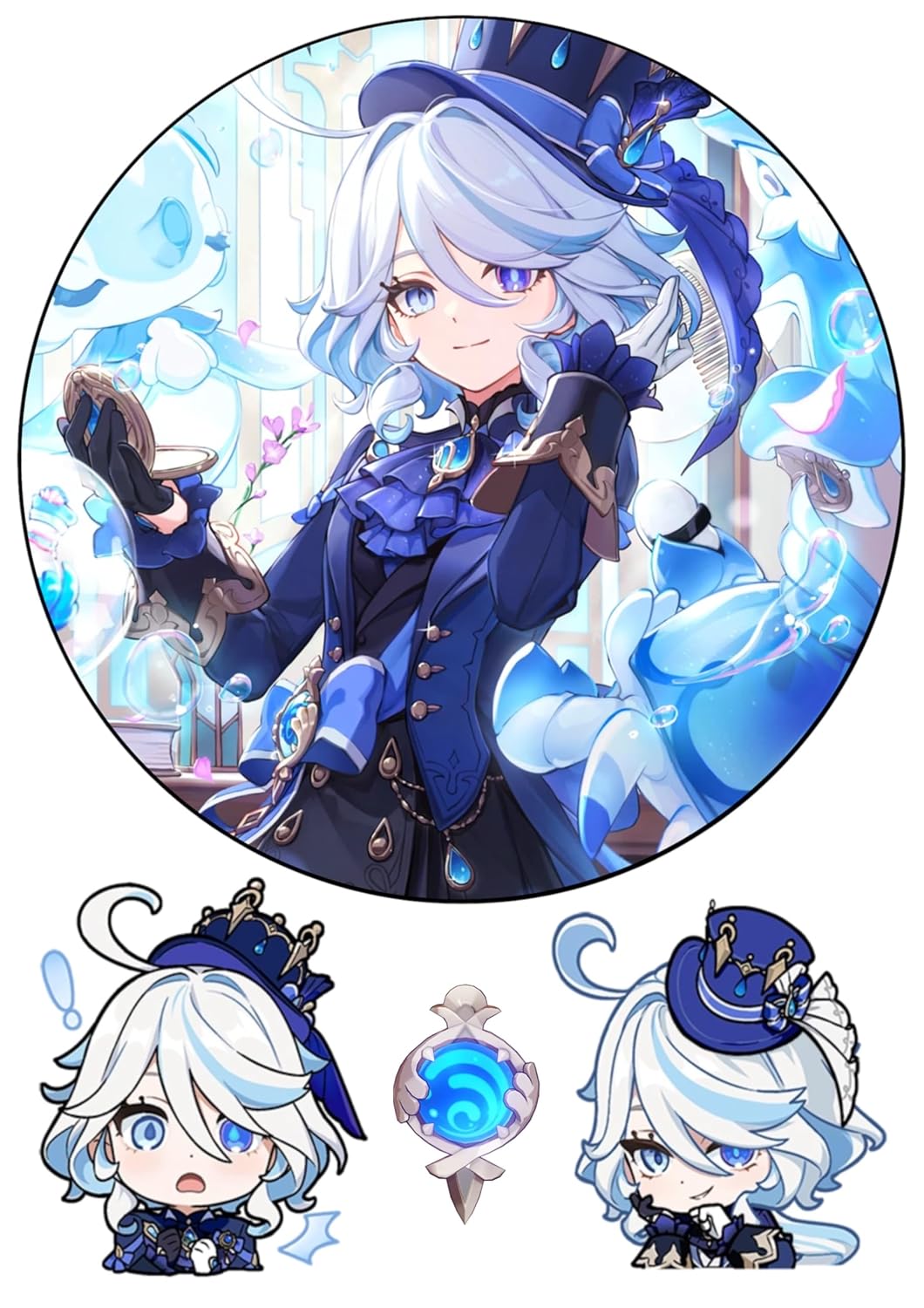 Der Tortenaufleger “Genshin Impact – Furina” ist eine exzellente Wahl, um Ihrer Geburtstagstorte einen Hauch von Eleganz und Abenteuer aus der Welt von Genshin Impact zu verleihen. Hergestellt aus hochwertigem Zuckerpapier, zeigt dieses essbare Dekor das eindrucksvolle Motiv “Furina” in lebendigen Farben und mit detailreichem Design. Mit einem Durchmesser von 20 cm ist dieser Aufleger perfekt für größere Torten geeignet und sorgt dafür, dass Ihre Kreation zum Mittelpunkt der Feier wird.