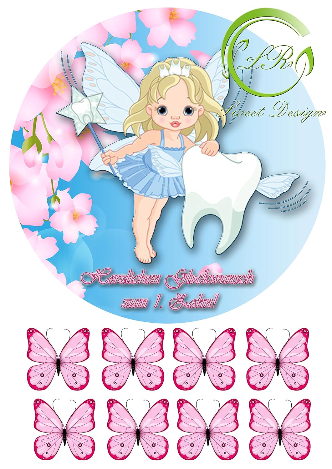 Der Tortenaufleger “Glückwunsch zum 1. Zahn” ist eine liebevolle und bedeutungsvolle Tortendekoration, um den ersten Zahn Ihres Kindes zu feiern. Hergestellt aus Standard-Oblatenpapier, bietet dieser Aufleger ein charmantes, leicht marmoriertes Erscheinungsbild, das auf hellen Tortenuntergründen besonders schön zur Geltung kommt. Perfekt für trockene Kuchen oder Torten mit Zuckerguss, Buttercreme oder Fondant, wird dieses Dekor Ihrer Feier eine besondere Note verleihen.