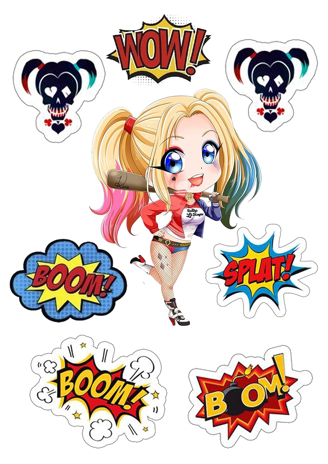 Tortenaufleger “Har Quinn” ist die perfekte Wahl für Fans des außergewöhnlichen Designs. Mit 7 Auflegern in einer Größe von je ca. 7-9 cm und einem großen Aufleger von 16 cm aus hochwertigem Zuckerpapier ist dieses Set ideal für Geburtstagsfeiern und thematische Veranstaltungen. Die fotorealistischen Motive und die beeindruckende Farbintensität machen diese Dekoration zum Highlight jeder Feier.