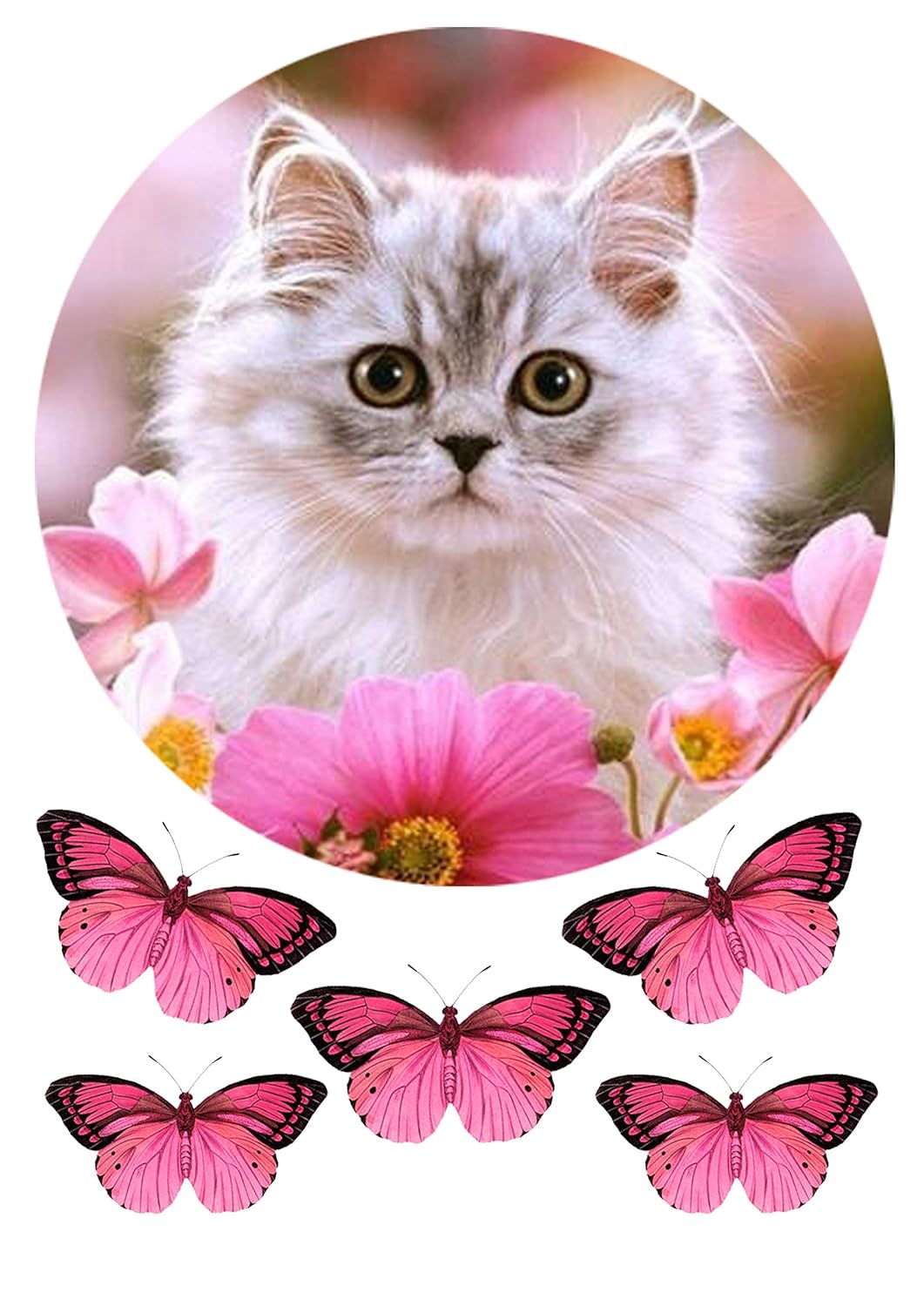 Der Tortenaufleger “Katze mit Blume” ist die perfekte Wahl, um Geburtstagstorten liebevoll und kreativ zu gestalten. Gefertigt aus Standard-Oblatenpapier, bietet dieses essbare Dekorpapier eine leichte und durchscheinende Optik, die besonders auf hellen Untergründen wie Zuckerguss, Buttercreme oder Fondant optimal zur Geltung kommt. Die niedliche Katzengrafik mit Blumenmotiv verleiht Ihrer Torte einen charmanten und einzigartigen Akzent.