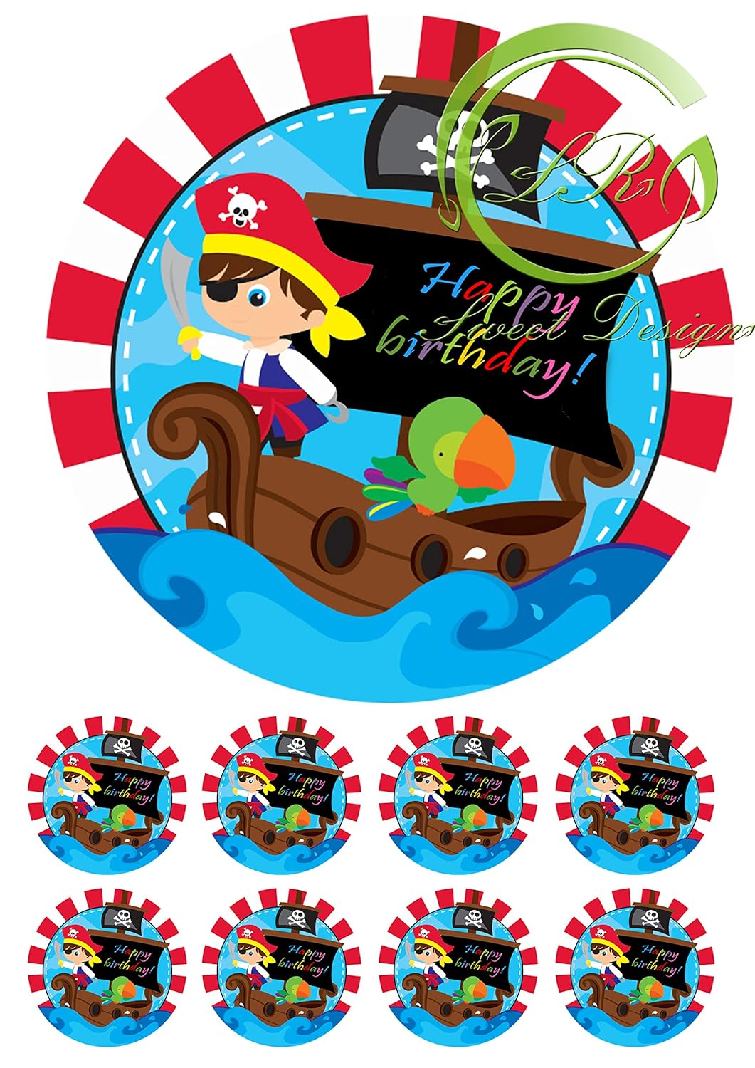 Der Tortenaufleger “Piraten” ist die perfekte Wahl für kleine Abenteurer und Fans des Piratenthemas! Hergestellt aus hochwertigem Zuckerpapier, bietet dieser essbare Tortenaufleger brillante Farbintensität und fotorealistische Motive, die jede Geburtstagstorte zu einem Hingucker machen. Mit seinem A4-Format können Sie die Designs flexibel zuschneiden und anpassen, um Ihre Kreationen individuell zu gestalten.