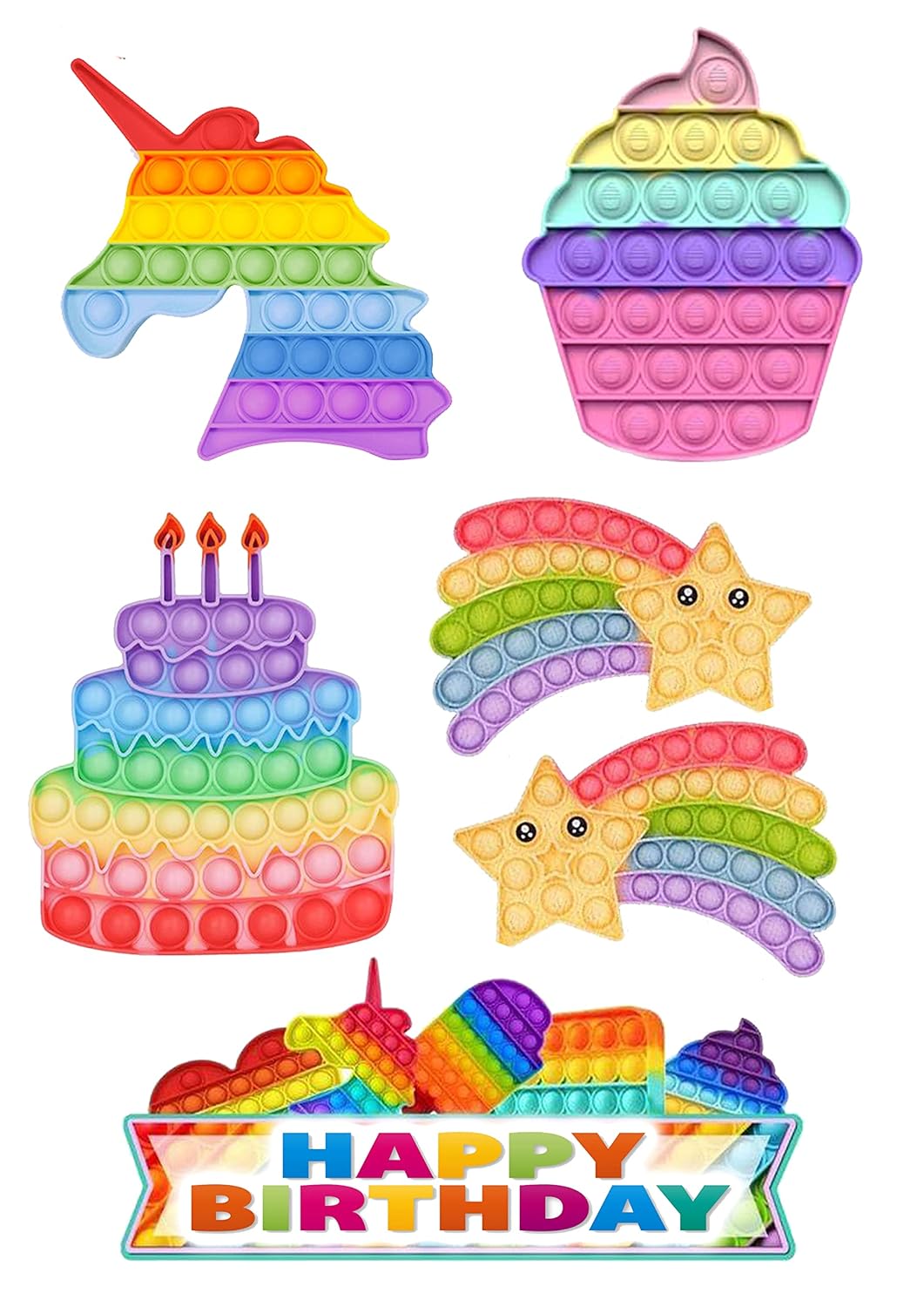Das Set “POP IT” von K&R GbR ist die perfekte Wahl, um Ihre Torte mit einem trendigen und farbenfrohen Design zu verschönern. Dieses Set enthält 6 Cake Topper in verschiedenen Größen (9-15 cm), die liebevoll gestaltete POP IT-Motive zeigen. Ideal für Geburtstagsfeiern und Fans des beliebten Designs, verleiht es Ihrer Feier eine kreative und moderne Note.