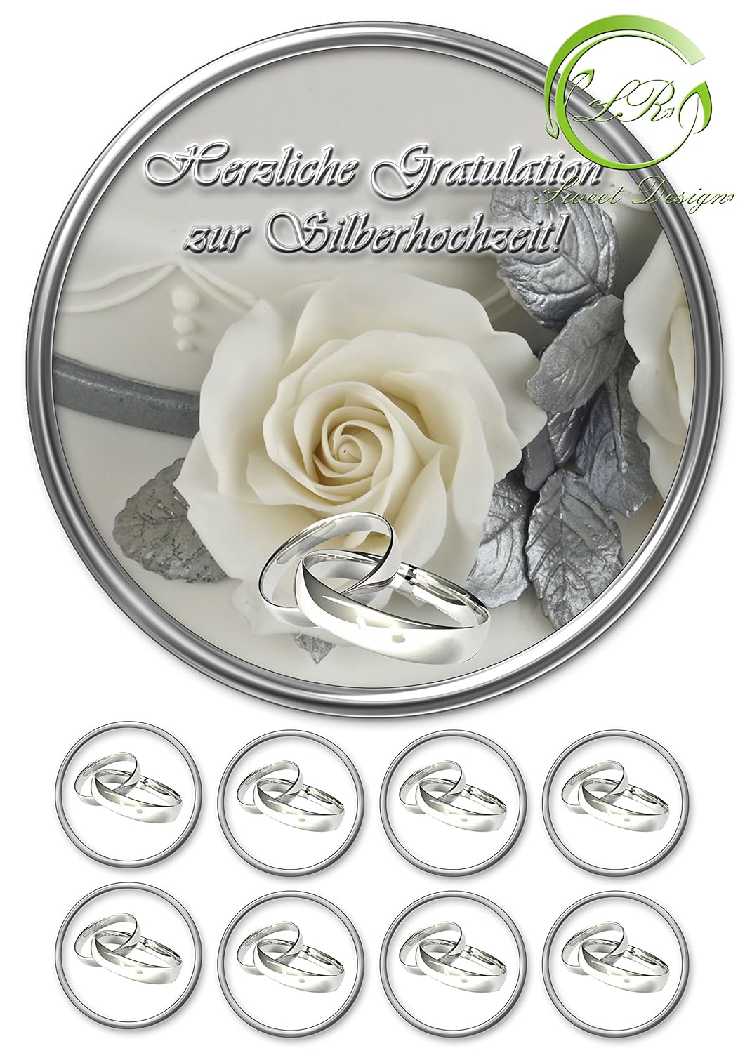 Der Tortenaufleger “Silberhochzeit!” ist die perfekte Wahl, um Ihre Torte für den 25. Hochzeitstag oder andere festliche Anlässe stilvoll zu dekorieren. Hergestellt aus hochwertigem Zuckerpapier, zeigt dieses essbare Dekor elegante und thematische Motive, die perfekt zur Feier einer Silberhochzeit passen. Es verleiht Ihrer Feier eine edle und persönliche Note.