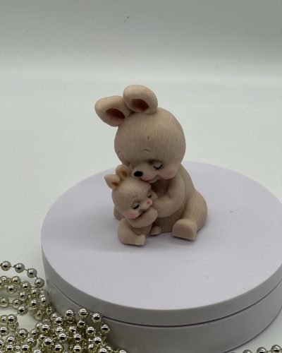 Zwei handgefertigte Häschen in Umarmung in Geschenkbox für liebevolle Momente